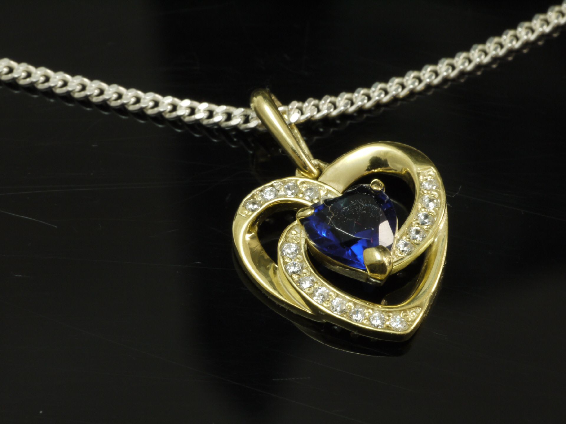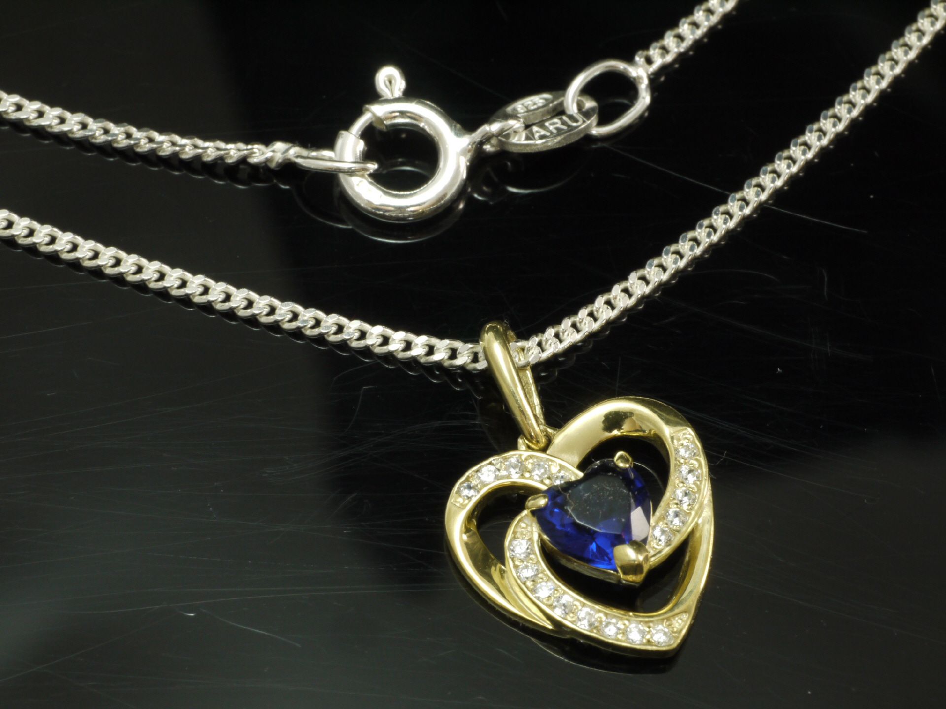 Silber Panzerkette mit Herz Saphir Anhänger