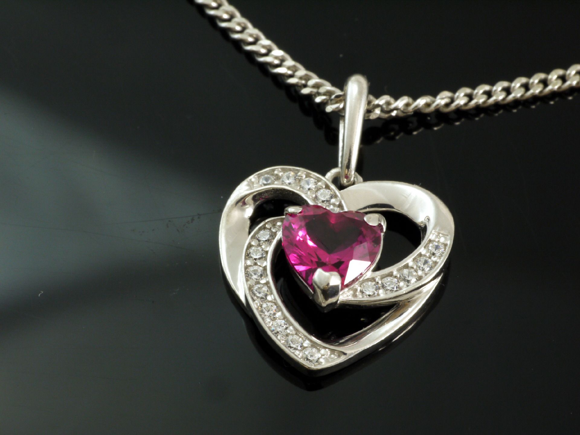 Silber Panzerkette mit Herz Rubin Anhänger