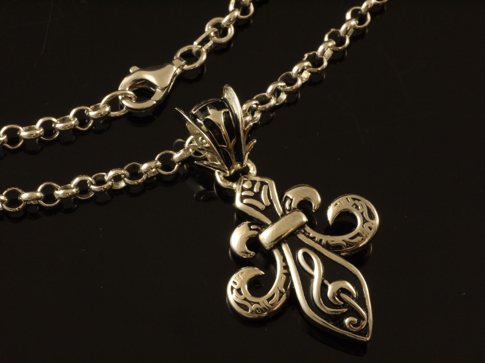925 Silberkette mit Lilien Anhänger mit Notenschlüssel