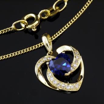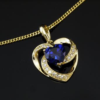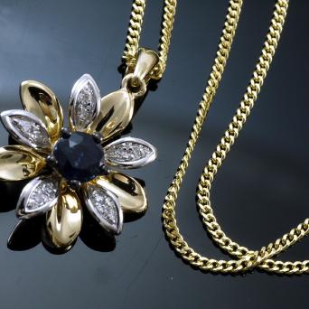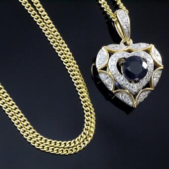 585 Goldkette mit Diamant Herz Saphir