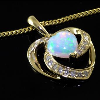 585 Goldkette mit Diamant Herz Opal