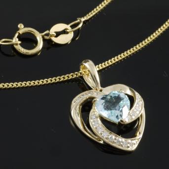585 Gelbgold Herzkette mit 18 Diamanten und 1 Blautopas