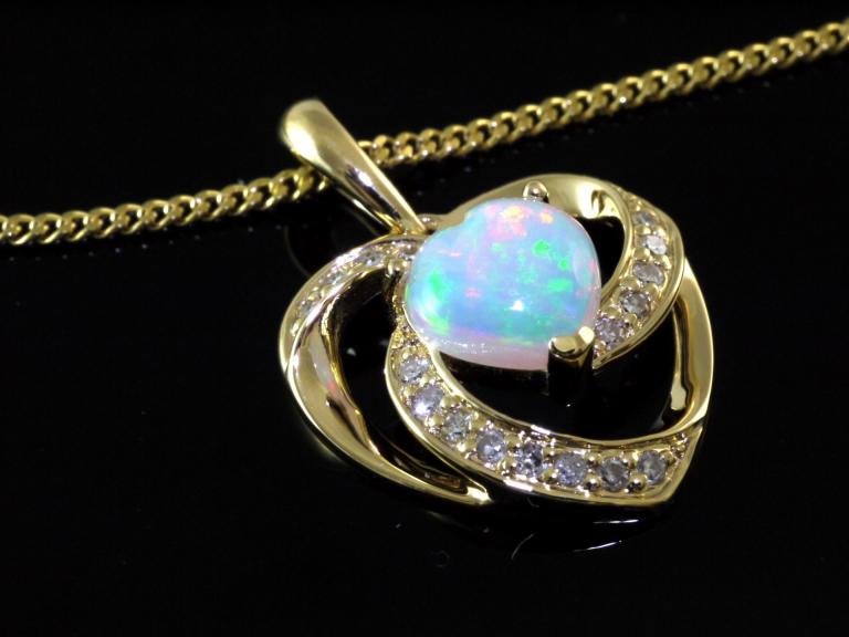 Feine Gold Panzerkette mit Herz Diamant Opal Anhänger