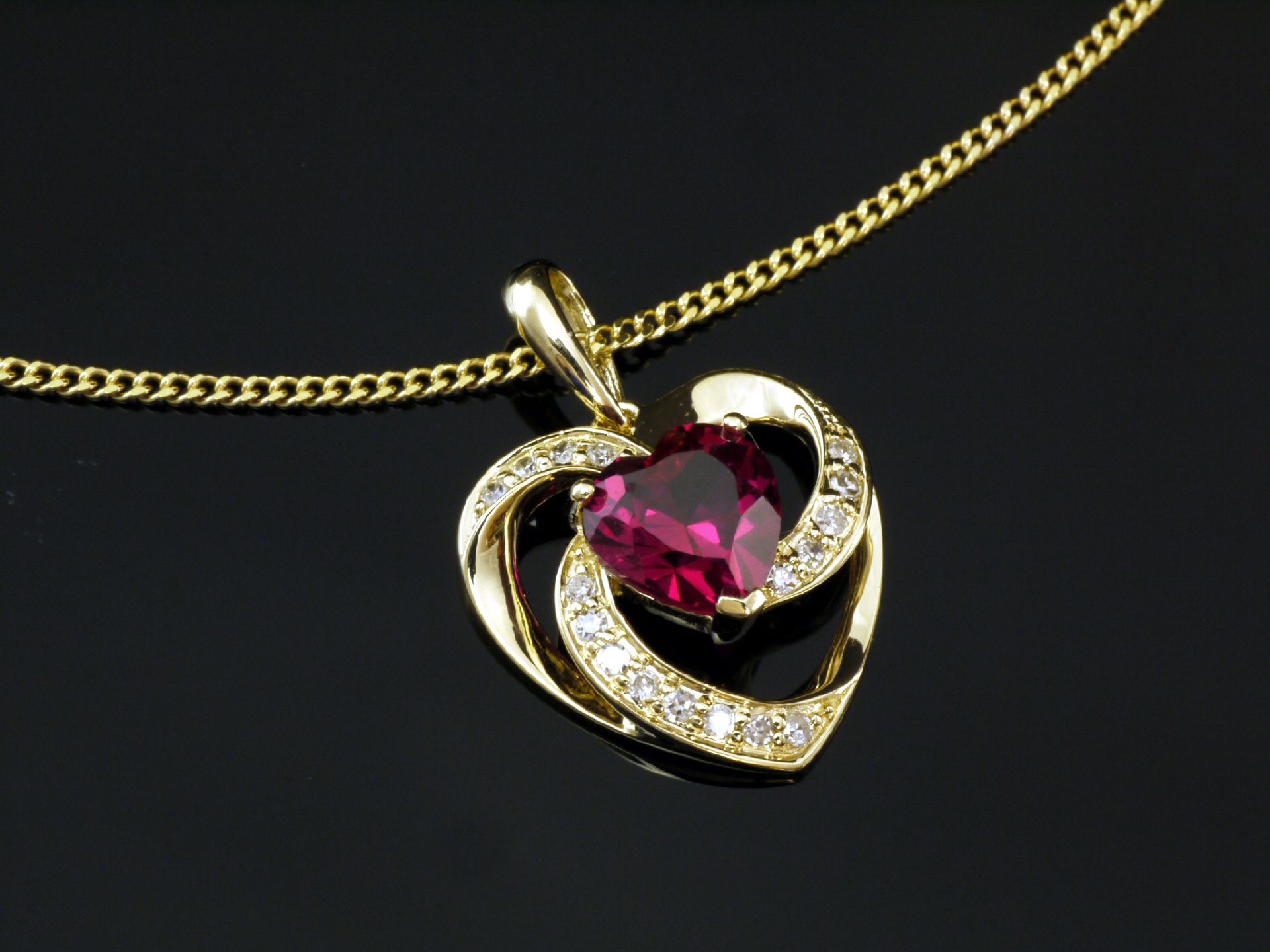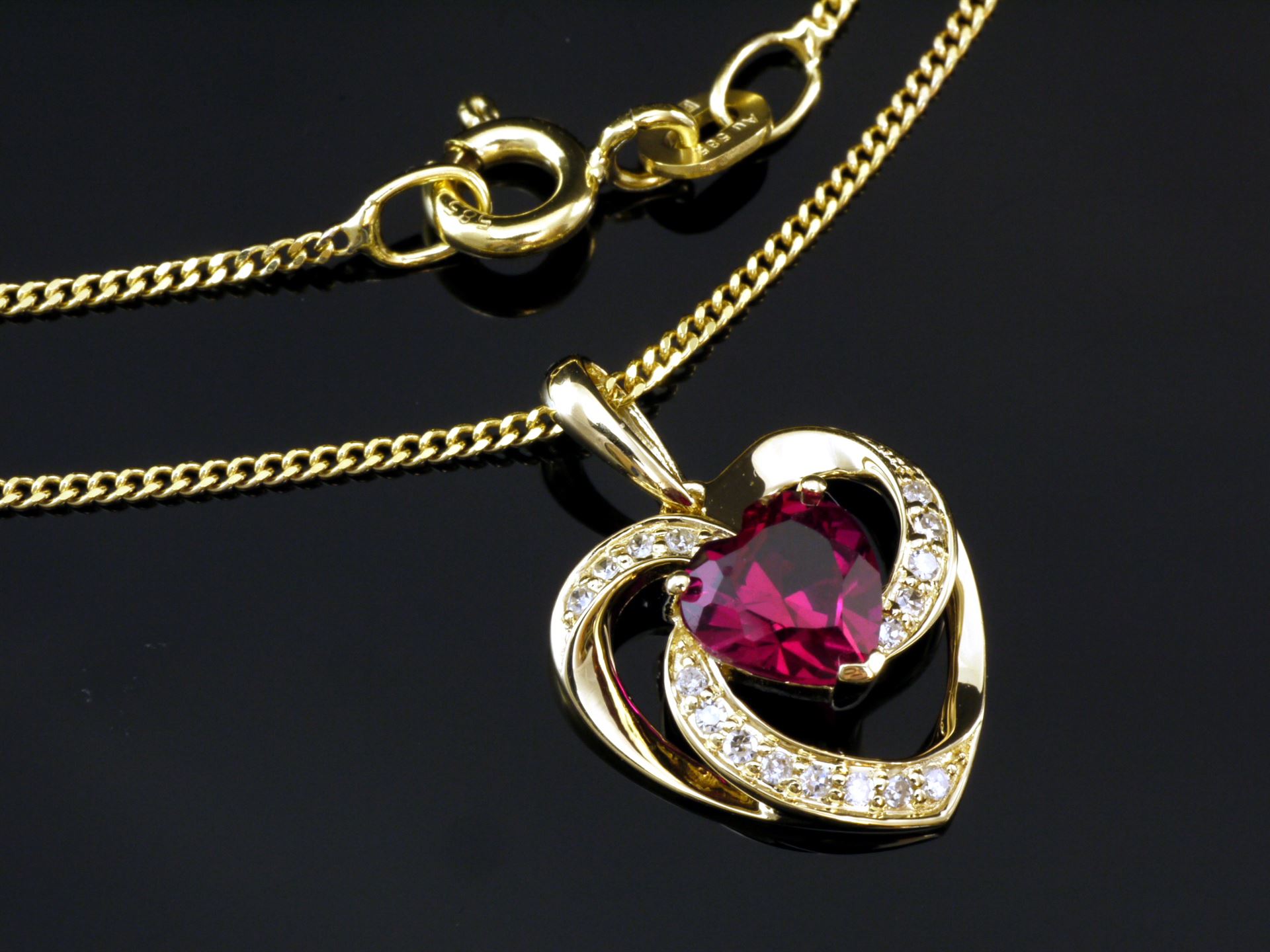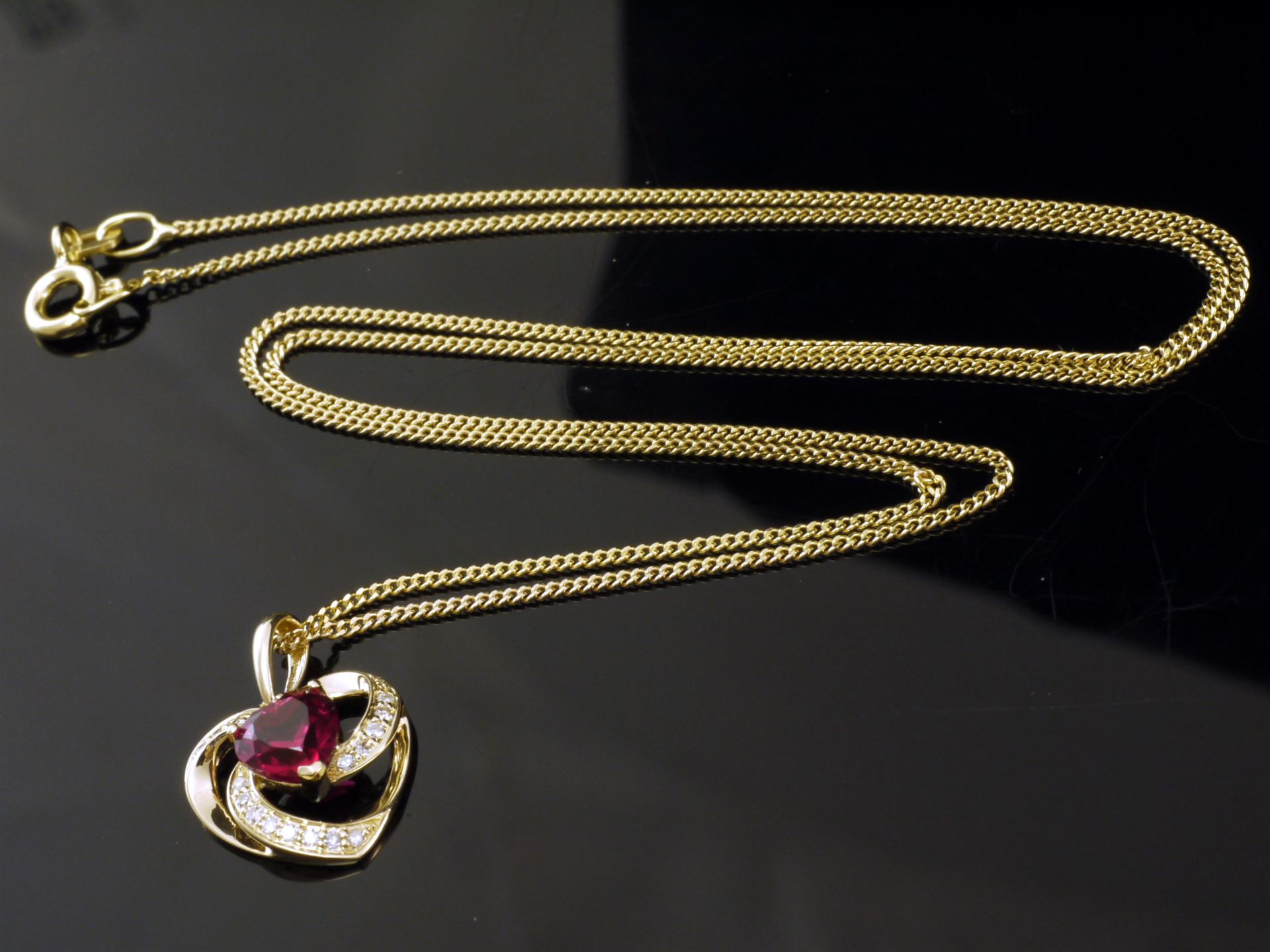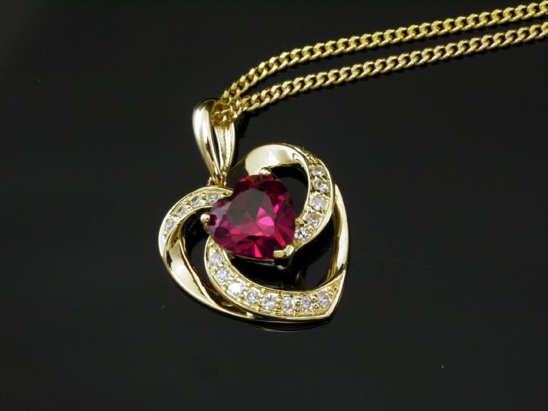 Gold Panzerkette mit Herz Rubin Anhänger