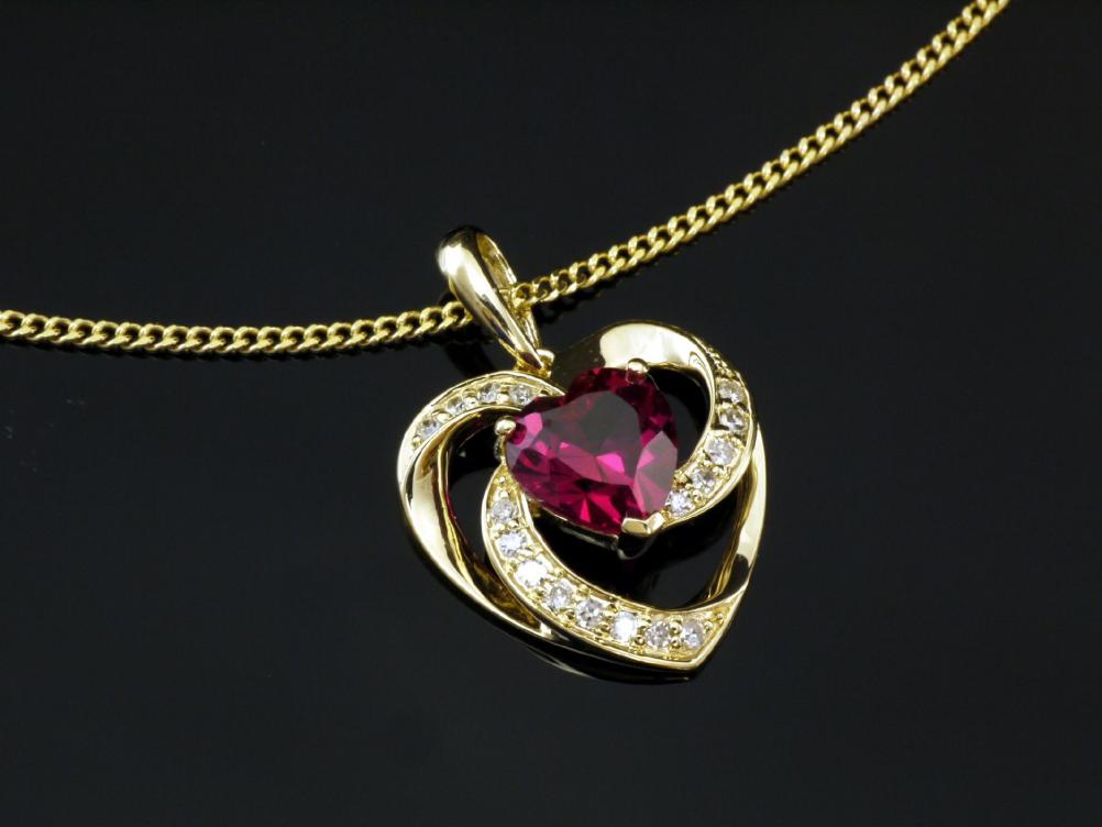 750 Goldkette mit Diamant Herz Rubin