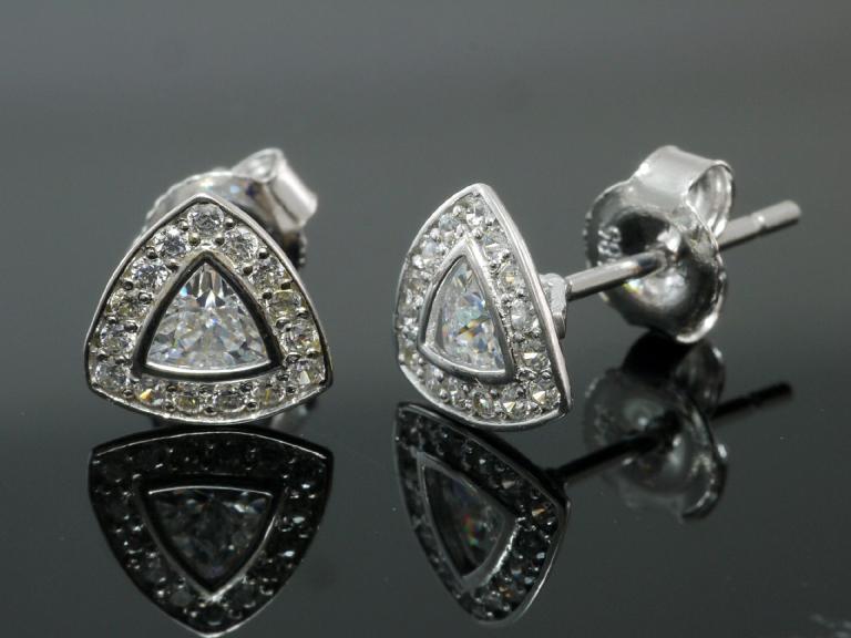585 dreieckige Weissgold Ohrstecker