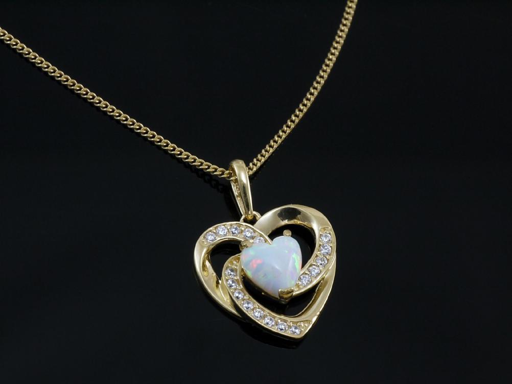 750 Goldkette mit Opal Herz Anh ...