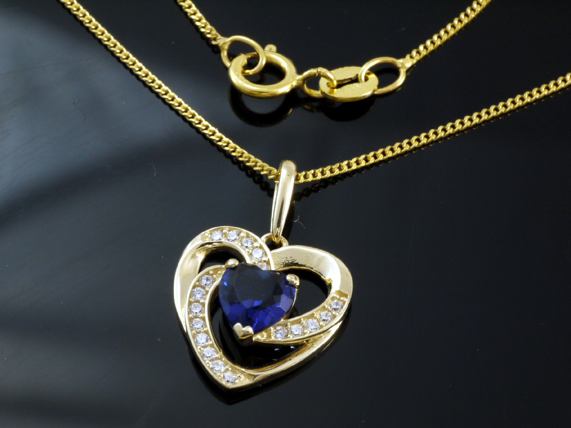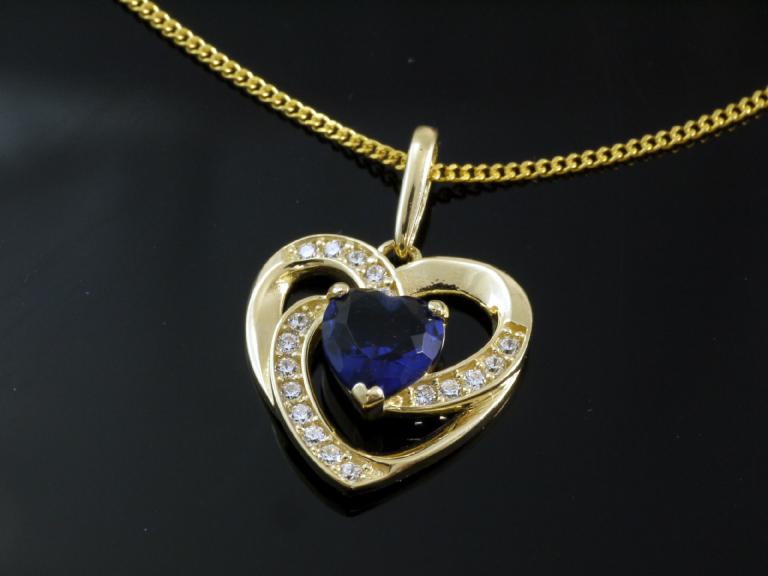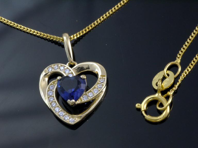 feine Gold Panzerkette mit Herz Saphir Anhänger aus Gelbgold 750