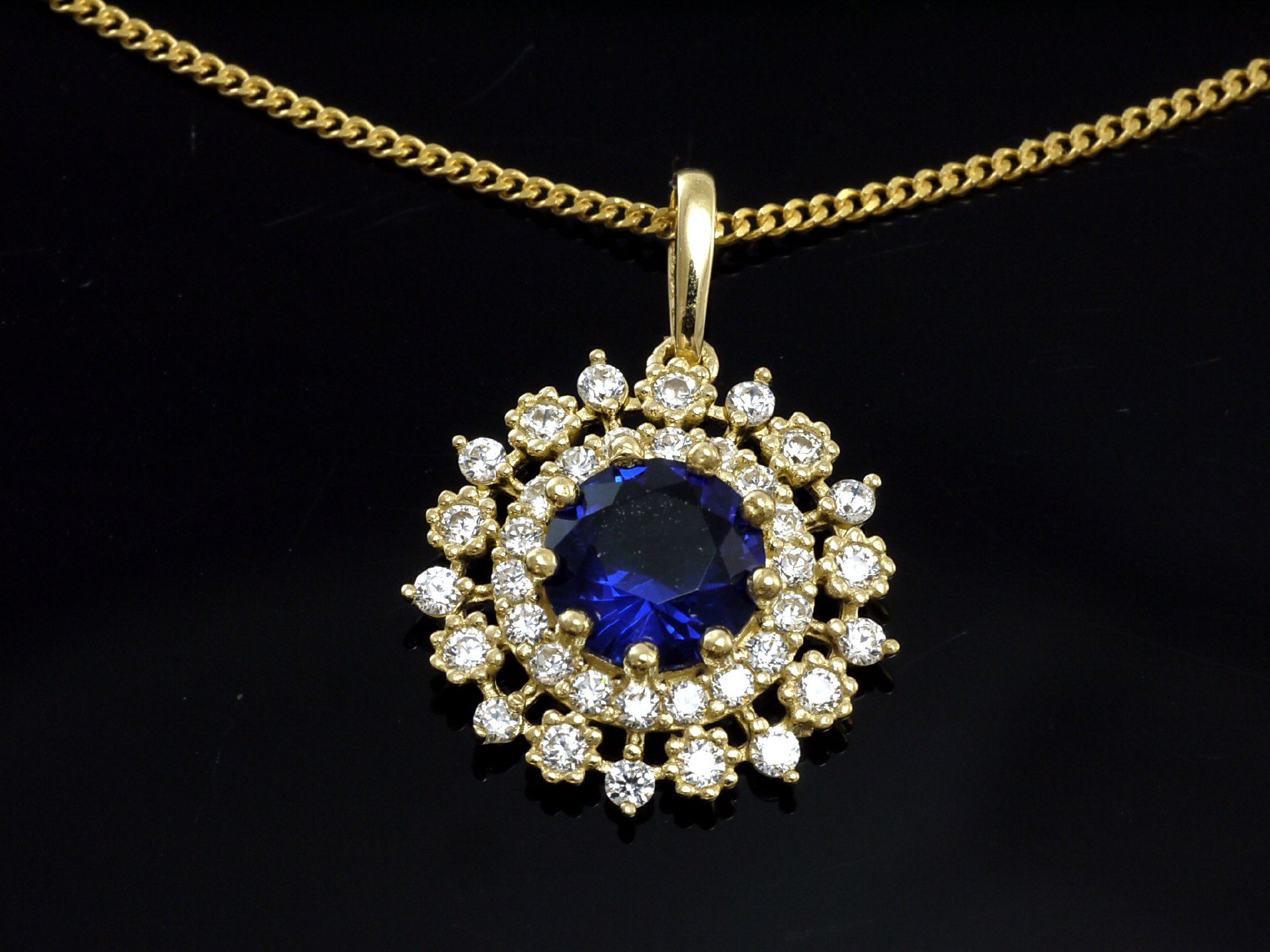333 Goldkette mit kleinem Saphir Anhänger
