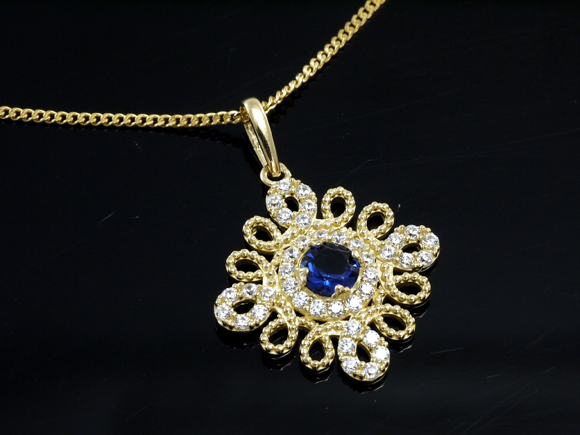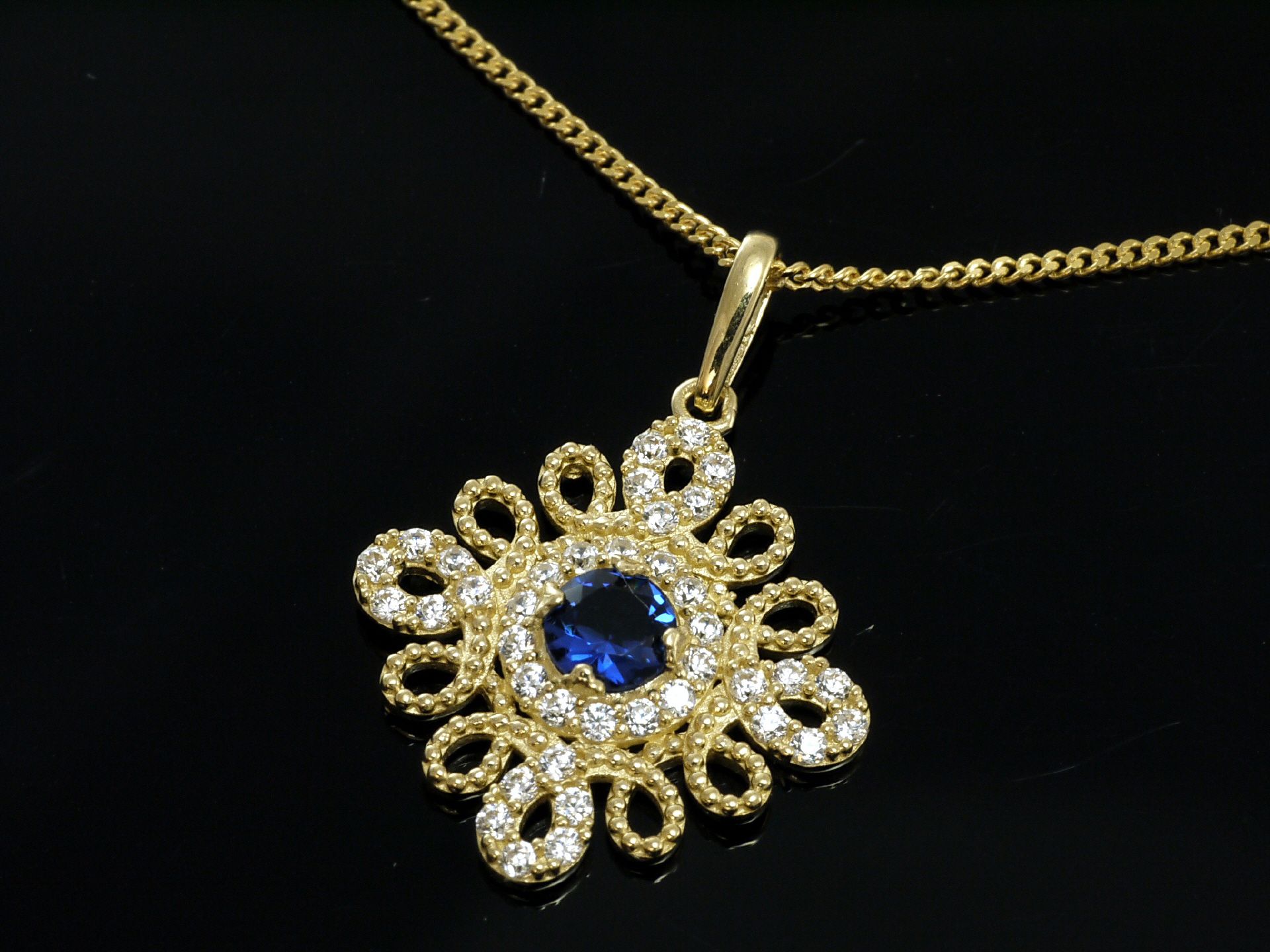 333 Goldkette mit kleinem Saphir Anhänger