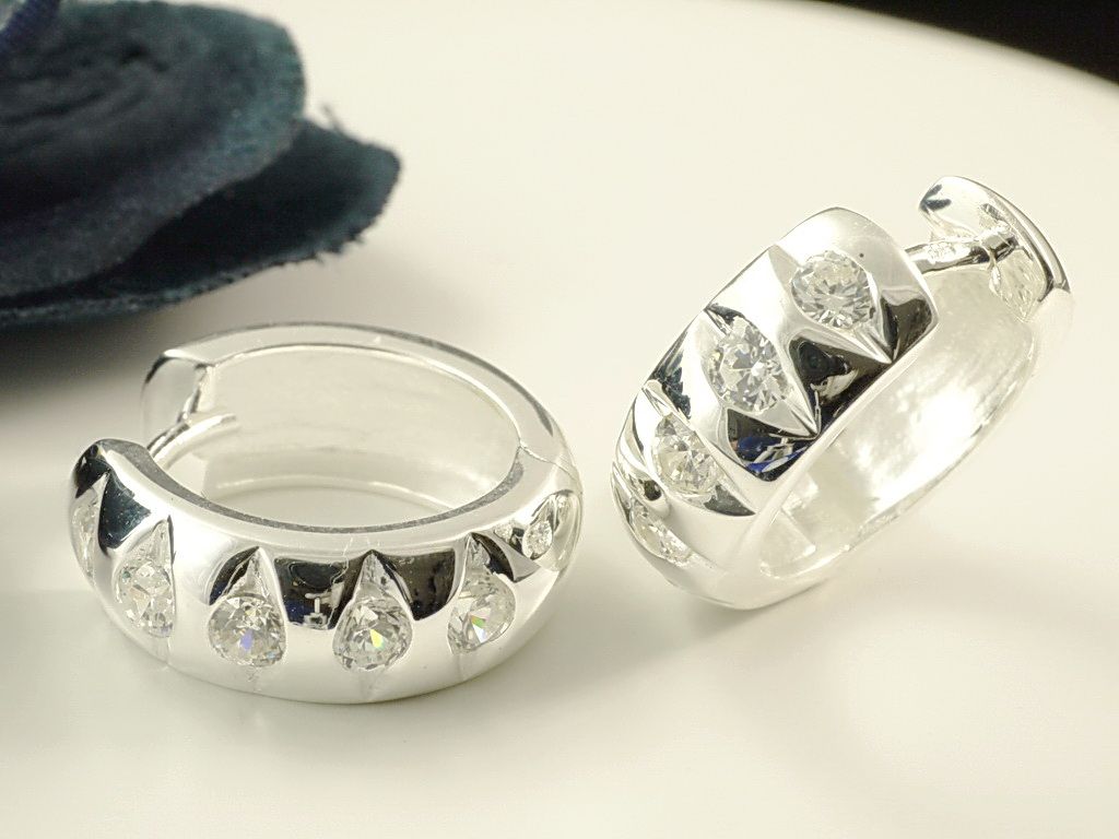 925 Silber Creolen Grösse 15,6 mm aussenBreite 5,6 mm10 gefasste Zirkonia SteineSchnappverschlussScharnier Creolen1 Paar