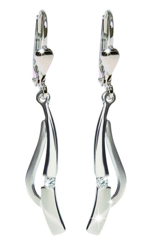 925 Silber Ohrringemit BrisurLänge 32 mmBreite 5,1 mmSterling Silber Ohrhänger poliertmit Zirkonia 1 Paar