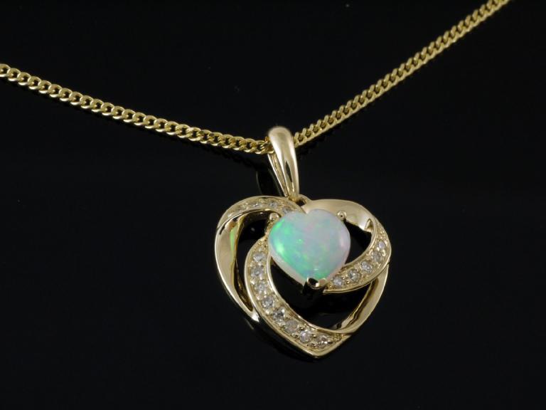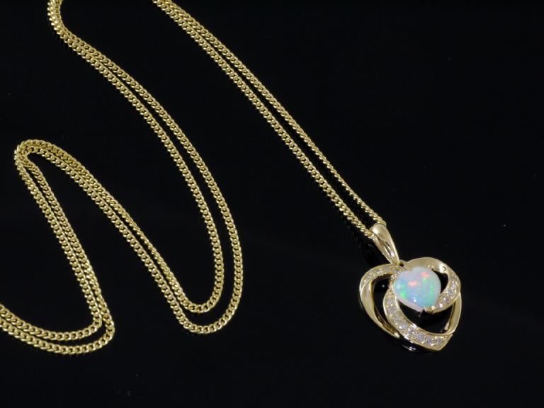 feine Gold Panzerkette mit Herz Opal Anhänger